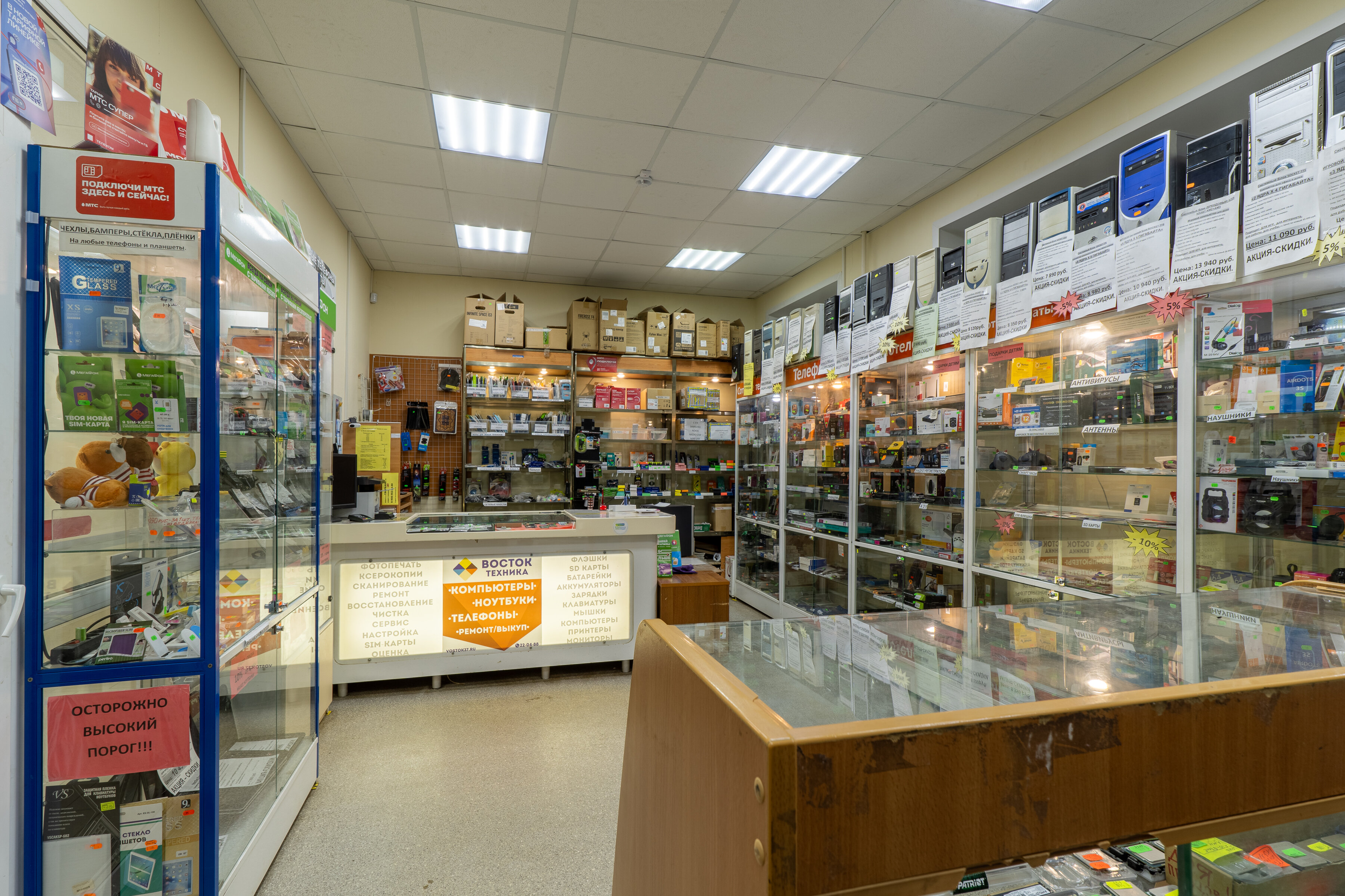 В центре можно приобрести компьютеры и комплектующие, мобильные телефоны и аксессуары, а также другую технику.